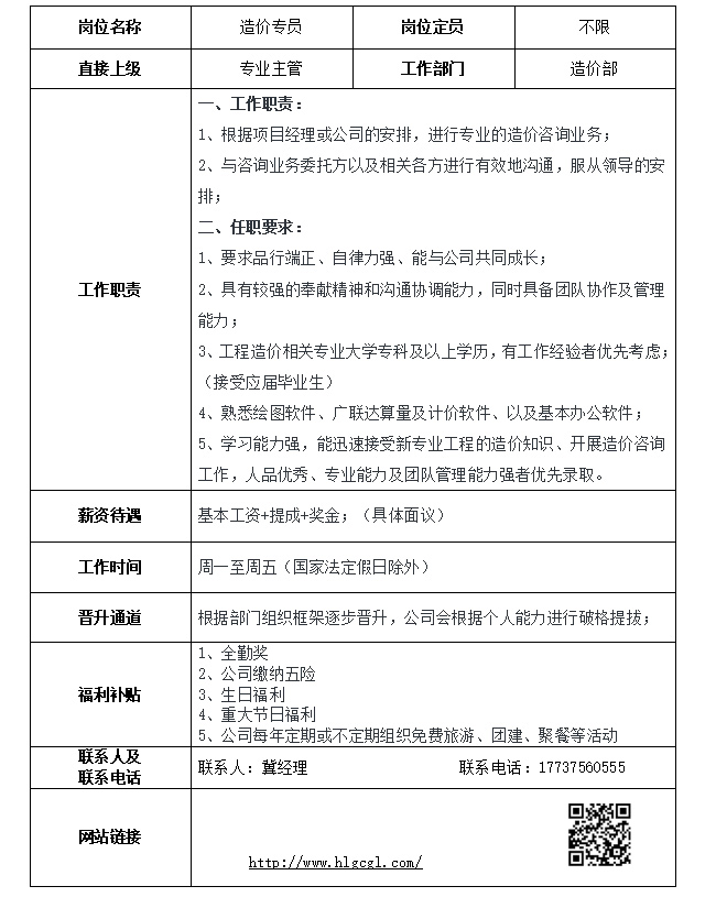 | 職位名稱: | 造價(jià)專員 | 應(yīng)聘此崗位 | |